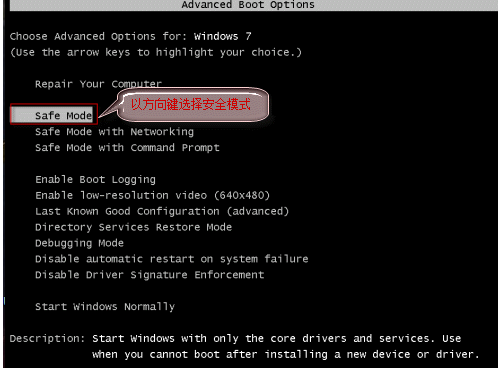 通过f8启动进入修复系统解决: