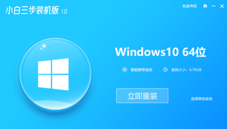 1.关掉防病毒软件后,打开小白三步机软件,在这里直接选择立即重装。