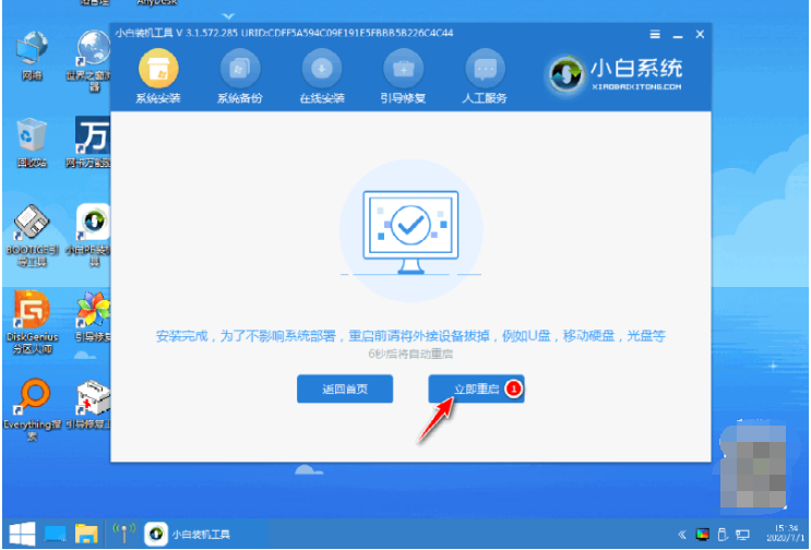 9.当系统安装完成之后,页面会弹出一个立即重启的按钮,此时我们单击它进行重启即可。
