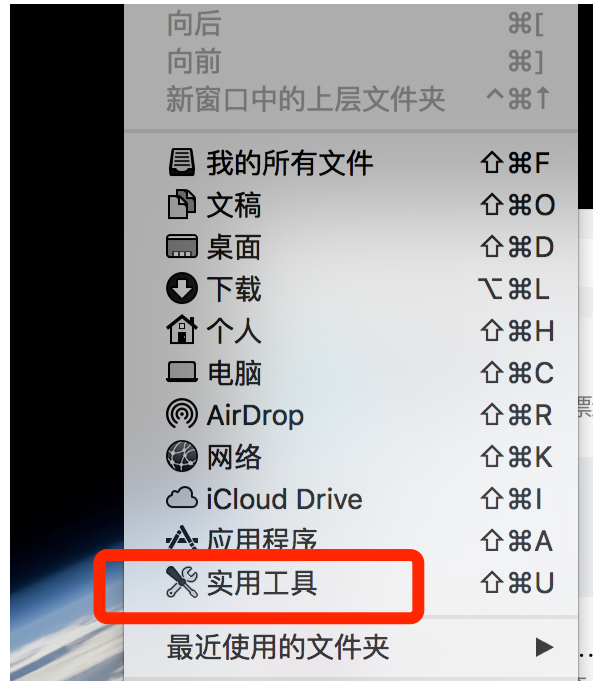 2.选择BootCamp助理工具在一个工具界面上打开。