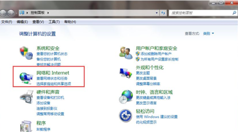 打开win7控制面板,点击进入【网络和internet】;