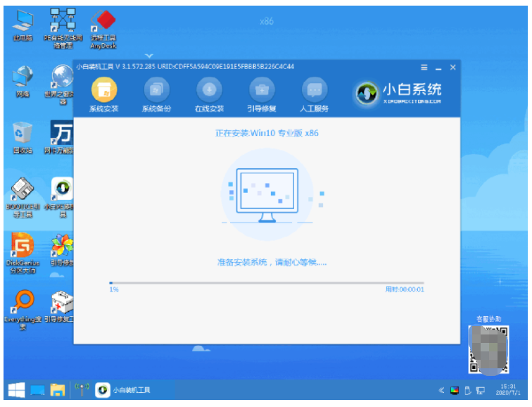 5、进入pe系统后,小白装机工具会自动开始安装win10系统。