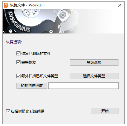 3、接着根据需要勾选“完整恢复”,点击“开始”按钮。