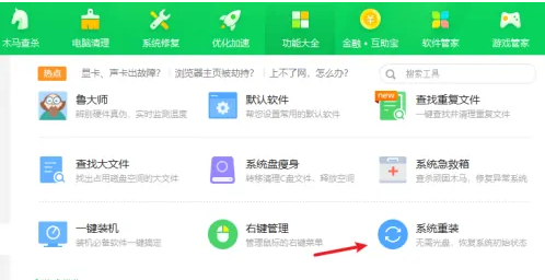 4.随后在右侧页面里找到系统重装功能;