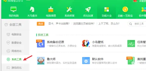 3.打开功能页面,在左侧的项目栏中选择系统工具选项;