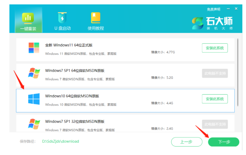 1、下载并运行石大师一键重装系统,点击确认安装此系统后进行下一步。
