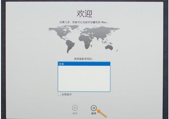 12、当系统安装完成后会自动重启,点击继续进行mac系统配置即可正常使用新系统。