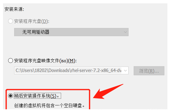 3.选中稍后再安装系统。(因为要先定义硬件,再在模拟机中进行系统的安装。)