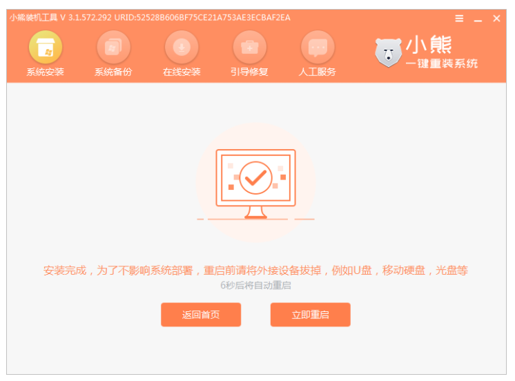 以上就是小熊一键重系统重装win7系统的步骤,操作是非常简单的,安装的系统也比较纯净,因此总体来说小熊一键重装系统软件是比较好用的。希望看完以上操作步骤能够让对这款软件有初步的判断。