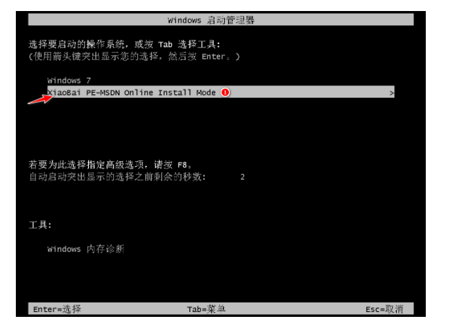 4、选择第二个 XiaoBai -MSDN Online Install Mode 菜单,按回车进。