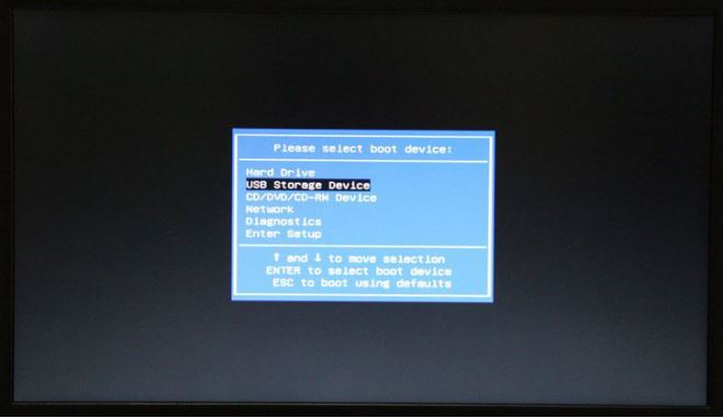4、最后重新启动电脑,还是重复第一步骤出现画面的时候连续不停地按F2键,进入BIOS。然后按方向键移动到“USB Storage Device”,选择好以后按键盘F10保存即可设置成u盘启动,进入u盘pe内重装系统了。