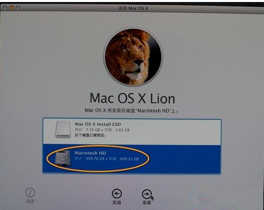 10、点击同意软件许可协议,再点击已经分区的硬盘,例如Macintosh HD进入安装。