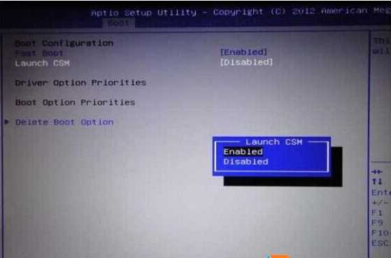 3、后面可以先按一下F10进行确认保存然后退出BIOS,进行重启以后继续按ESC,在菜单还没启动的时候,再次进入BIOS,切换boot页面,可以Launch CSM改为Enabled或者是OK。然后继续点击F10保存重启。