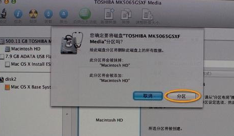 6、窗口提示分区数据将被抹掉,核对没问题后,勾选【分区】。