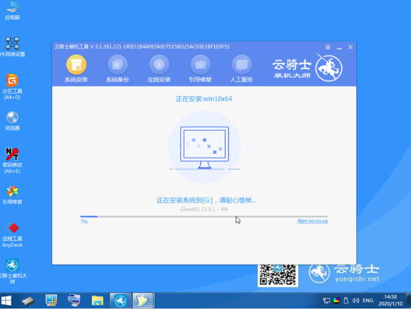 步骤5:弹出云骑士装机大师温馨提示用户关闭一切杀毒软件来进行下面操作,点击下面“我知道了”。