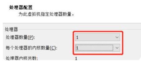 6.设置处理器的数量,处理器数量与核数不能超过当前物理机上的处理器数量与核数。
