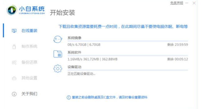 2、耐心等待下载系统影像、系统软件、设备驱动资料等等。