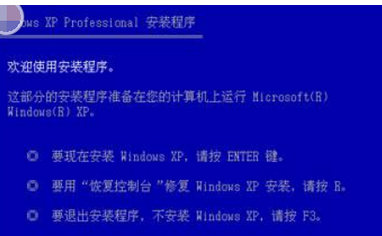 步骤1、首先光驱启动系统后,出现如下图所示的Windows XP安装欢迎界面。根据屏幕提示,按下Enter键来继续进入下一步安装进程。