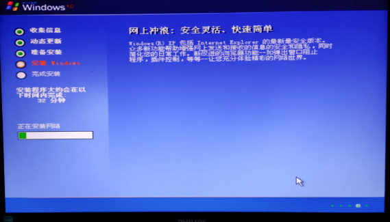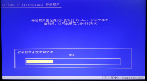 10、镜像文件拷贝完成之后,点击重新启动计算机脑,开始进行对windiows xp系统的基本配置。