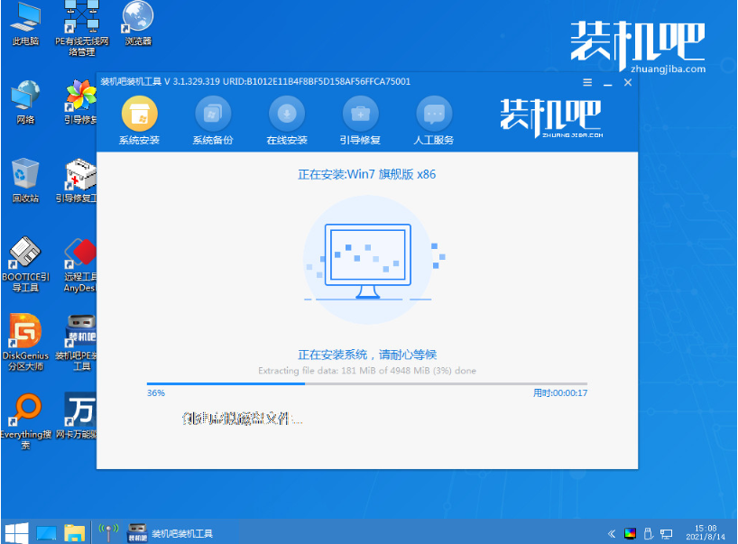 5、打开装机吧装机工具,选择系统点击安装到系统盘c盘。