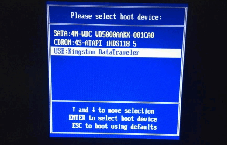 3、选择usb hard drive回车,这时系统就会从u盘启动进入。