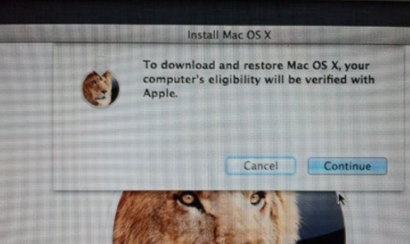 9.点击Reinstall Mac OS X,然后会弹出在安装前会先与 Apple 的伺服器取得认证,这个时候一定要连接互联网,然后点击Continue继续。