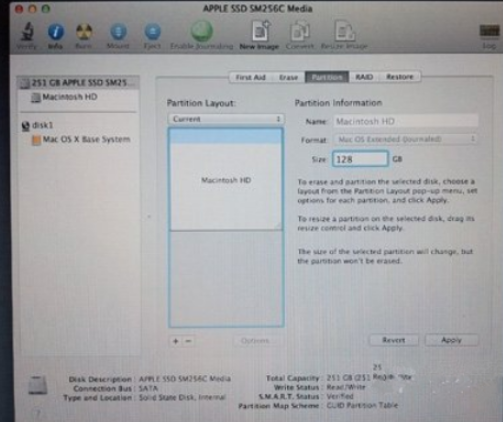 8.然后点击Partitions,再拉动下方左侧白色部分右下角的位置,就可以调节使用 Macintosh HD 的部分。完成后再在右方点按未设定的部分,再建立新磁区就可以了。