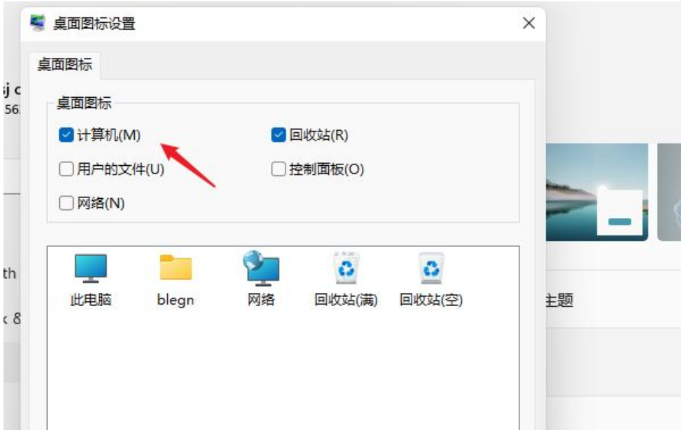 4.在桌面图标选项中勾选中“计算机”,点击【确定】即可。